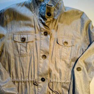 Chico's sz 2 100% cotton blazer/jacket shimmering silvery-pewter