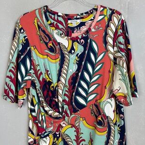 Chicos size 3 /XL touch of cool abstract draped tunic top colorful short sleeve