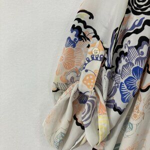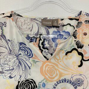 Chico's size 3/XL Multi Color Floral 3/4 Sleeve Split Neck Popover Blouse Office