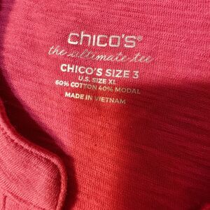 Chico's size 3XL Tunic Top Pink Geometric Sharkbite Hem Cotton Modal 3/4 Sleeve