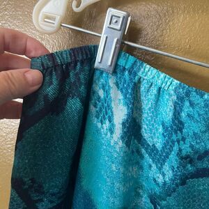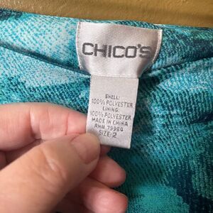 Chico’s size L ocean colors pattern A line skirt. Side zipper. Two side elastic insets. Lined. Pleated bottom. Waist side to side 17.5” and length 27”.