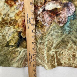 Chico's size XL/3 Green Brown Floral Split Neck Mesh Stretch Artsy Boho Blouse