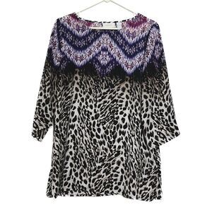 Chicos size one, medium, 3/4 sleeve abstract, animal, print pattern top