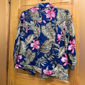 Chico’s size 1 gorgeous pink & blue floral linen jacket