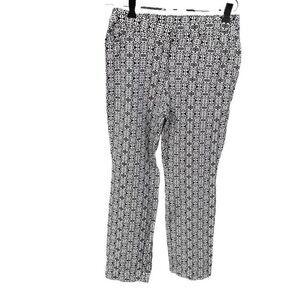Chico’s size 4 So Slimming tile print straight fit pants . These are full length with straight fit, straight through the hips , thighs and leg opens. Bi Stretch fabric with secret stretch. Secret stretch panel