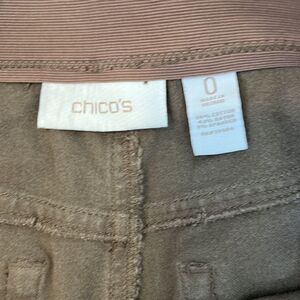 Chicos size O/S brown comfy cropped zip front elastic waist band jeans EUC