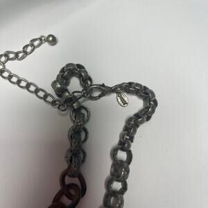 Don’t miss this costume jewelry necklace By chico’s mixed media tortoise shell in burnished silver tone boho bohemian trendy perfect for contemporary casual or career wear.
