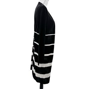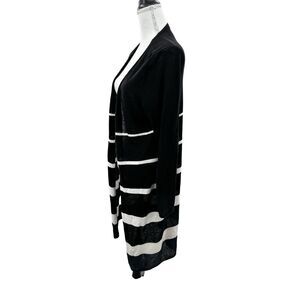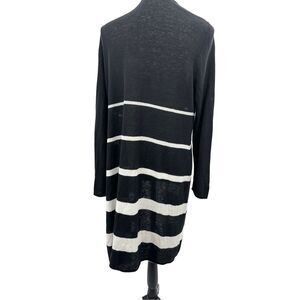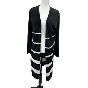 Chicos long sleeve sweater cardigan navy blue and white stripped line / cotton blend