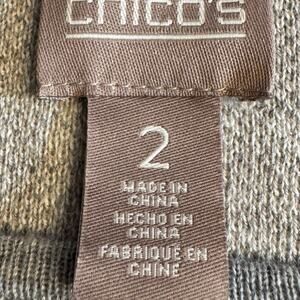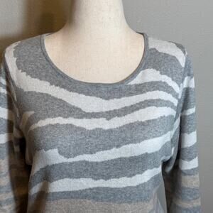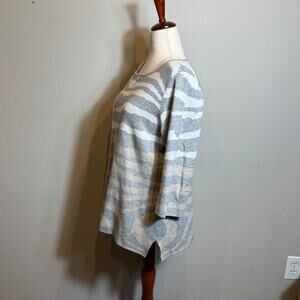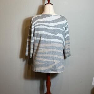 Chico's sweater gray tan cream white zebra print 3/4 sleeve pull on Sz 2 US L
