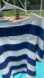 Chico’s sz 2 Medium 12 Blue Bold Stripe Kimono Short Sleeve Blouse EUC