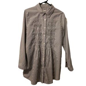 Chicos sz 2 blue pinstriped button down Pintuck 3/4 sleeve sz L