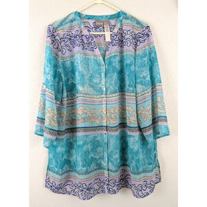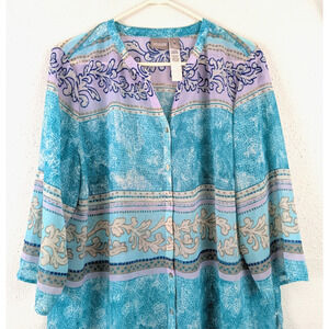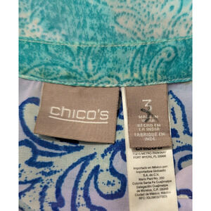 Chico's sz 3 Sheer Shirt not lined buttons Market Place Stripe Tunic 1098