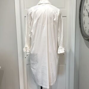 Chico's size large (2) white dress with eyelet sleeves. Dress comes with white slip. Button down on chest. Both are in excellent condition. Nice crisp classic white. Dress has some stretch to it and pockets! Who doesn’t love pockets! Perfect vacation dress.