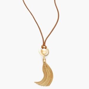Chicos tegan necklace NEW Gold toned and Tan Tassel Necklace
