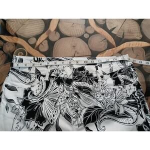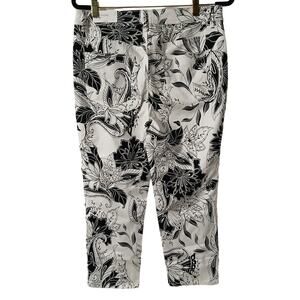 Chico's the Platinum Girlfriend Crop Slim Fit Floral Pants Black White Medium