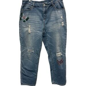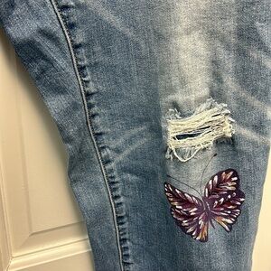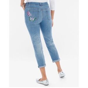 Chico’s the So Slimming Girlfriend Crop Ankle Jeans with painted Butterf…