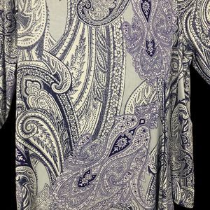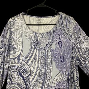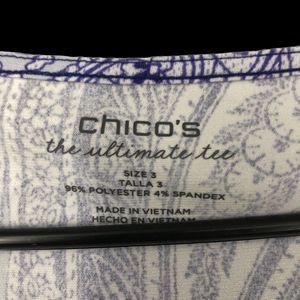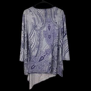 Chicos the Ultimate Tee Purple & White Paisley Tunic Top, Handkerchief Hem SZ 3