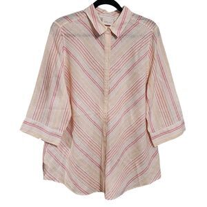 Chico's top multicolor striped linen button up 3/4 sleeve mature 14