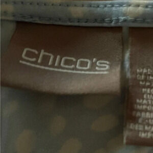 Chico’s top size 1 (M/8). Light and dark blue. It has 3/4 length sleeves and notched collar. This top is in great condition with no rips, stains or holes.