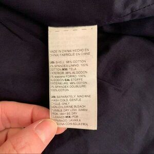 Navy blue long sleeve jacket from Chico's with dramatic ruffle sleeves, ideal for adding a touch of elegance to any outfit. This topper style jacket is size 2.