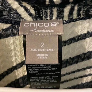 Like new with no signs of wear or defects. Size 2 US 12-14 dark navy/cream open front Chico’s cardigan. Tote 12.