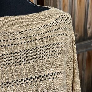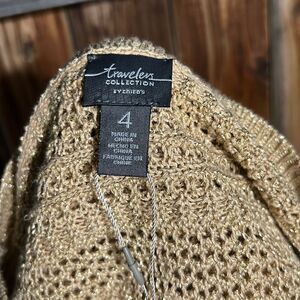 Chico’s travelers top knit sweater crochet gold metallic 4 FIRM on PRICE