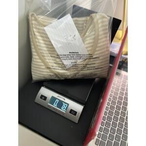 Chico’s Chicos knit t-shirt tee blouse top women’s size 8 (vanity size 1) tan and white stripe v neck small buttons