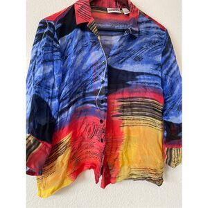 Chicos vintage 100% silk abstract loose fit blouse size medium