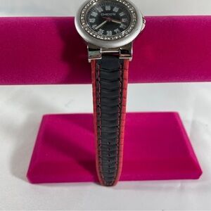 Chico’s watch, NWOT, black and red leather band, beautiful everyday watch, needs new battery, a beautiful watch!