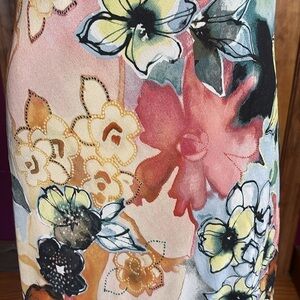 Chico's watercolor Silk Wearable Art Fit & Flare Silk Y2K Slip Midi Dress M/L