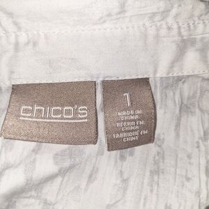 Chicos white button-down blousehas two breast pockets 8-10 pit to pit size is 21.5 " top of shoulder to bottom hem is 28.5 " if you have any questions please message me bundle for bigger deals Bin-68