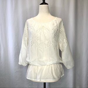 Chico’s white cotton lawn blouse with eyelets and elastic blouson waist size 0