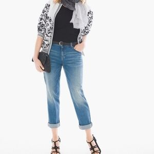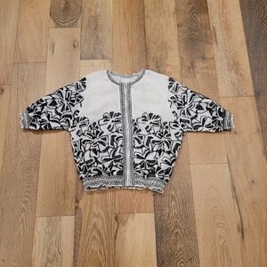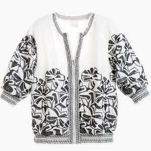 Chico's white linen black embroidered Smocked jacket size 1/Medium