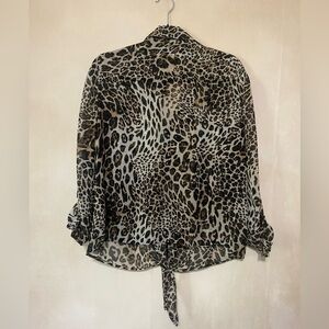 Chico's women's 2 (large) animal print semi sheer button down tie front blouse