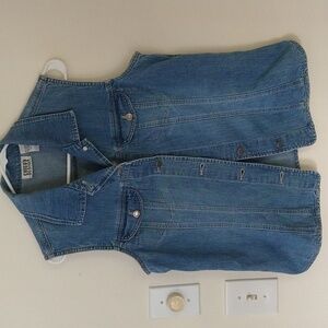 Chico's women's denim jean vest size 1 boho utility layer casual