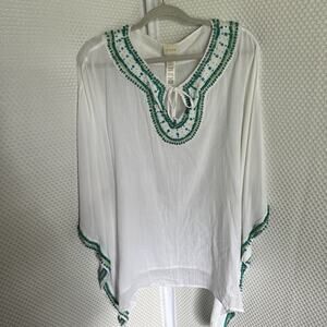 Chicos women’s kaftan Beaded Boho Coverup top size One Size Cruise Beach Pool