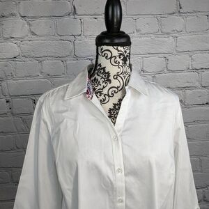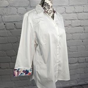 Chico's women's long sleeve cuffed button front shirt paisley print stretch b22