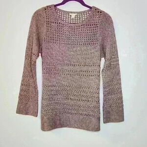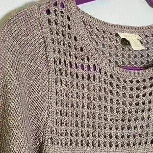 This sweater is plum color. it has holes as accents but cover exactly where it supposed to cover. Wear with or without cami.