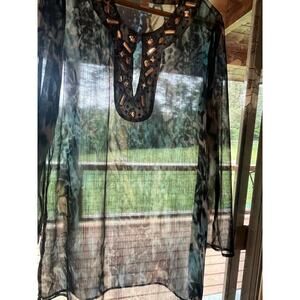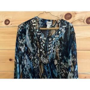 Chico's women's sheer embellished beaded multi color top/blouse. Size 1.
