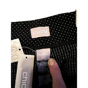 Classic Chico's women's wide leg black trousers with a white pattern. Stretch fabric for a comfortable fit. New with tags.