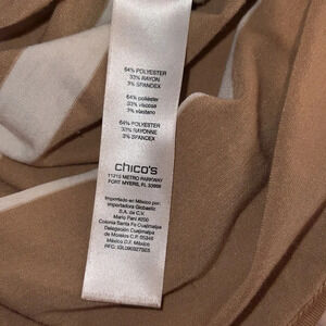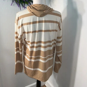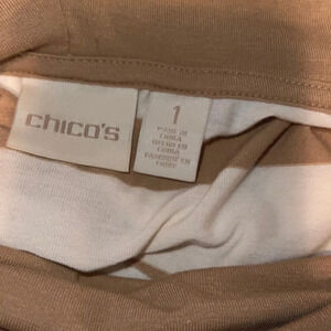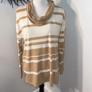Chico’s,1 Long sleeve cream and tan striped light weight cowl neck blouse.