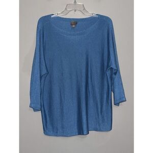 Chicos 2 Cashmere Blend Sweater Soft Cozy Boat Neck Dusty Blue Classic 12/14 Lg