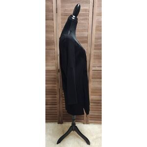 Chico's 2 Velvet-Appliqué Flutter Floral Sweater Large L Long Black V-Neck Tunic Top
