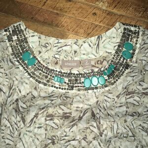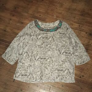 Gorgeous top! Approximately 22.5 inches from armpit to armpit, 26 inches long. From a pet and smoke free house. Happy to bundle!