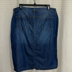 Chicos 2.5/M-L Blue Lightweight Denim Cotton/Lyocell Zip Front Fringe Hem Skirt