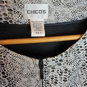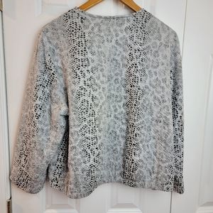 Chicos Size 3 Large Black Gray White & Silver Full Zip Jacket Animal Print Snake Print