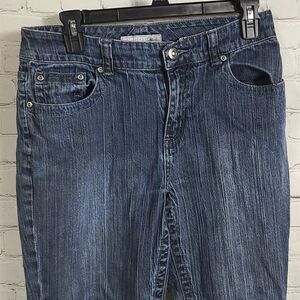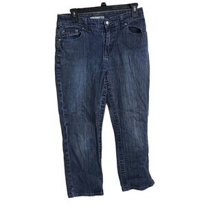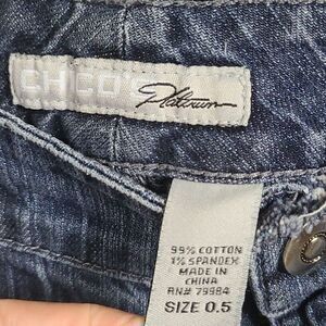 Chico's .5 (Small)Platinum Sandra Crop Capri Blue Denim Jean Vintage Distressed