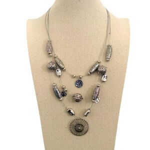 TAGS: chicos chicos austro multistrand pendant layered necklace bead disc hammered silver tone wheel spoke thin wire floating charms brand charm office dinner travel everyday #chicos #chicosnecklace #pendantnecklace #layeredjewelry #silvertonenecklace