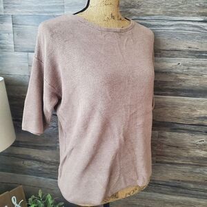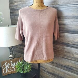 Chicos Beige Short Sleeve Shirt Woman's Size 1 100% Rayon Soft Material
