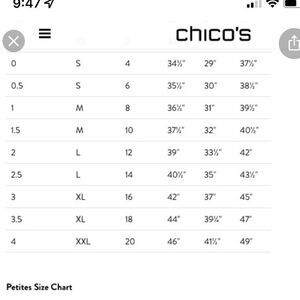 Chicos size 1…. Similar to a medium, know you’re Chicos size.